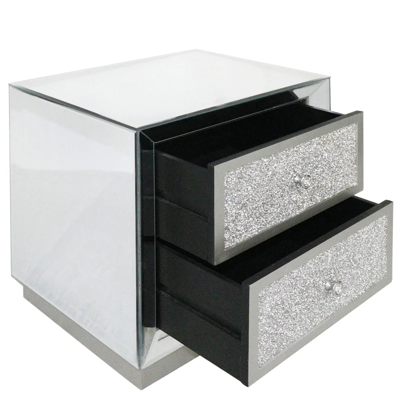 2021 Mirrored Bedside Table 2 Two Drawer Cabinet Glass Side Nightstand Bedroom Sets Wholesale Aliexpress Furniture
