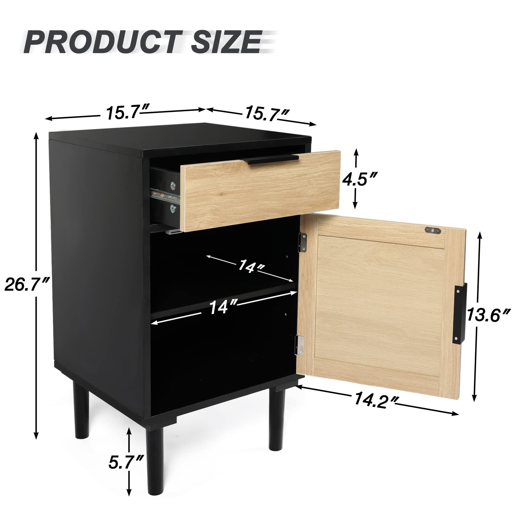Amazon Com Aotifarm Nightstands Set Of 2 Black With Drawer And Cabinet Bedside Table Set Of 2 With Rattan Door Wood Accent Side Table Night Stands For Home Bedroom Home Kitchen