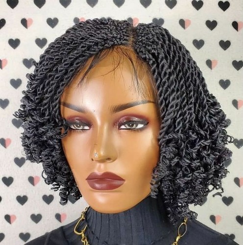 Short Black Wave Senegal Twisted Braids Wig Synthetic Braided Curly End Wigs Us Ebay
